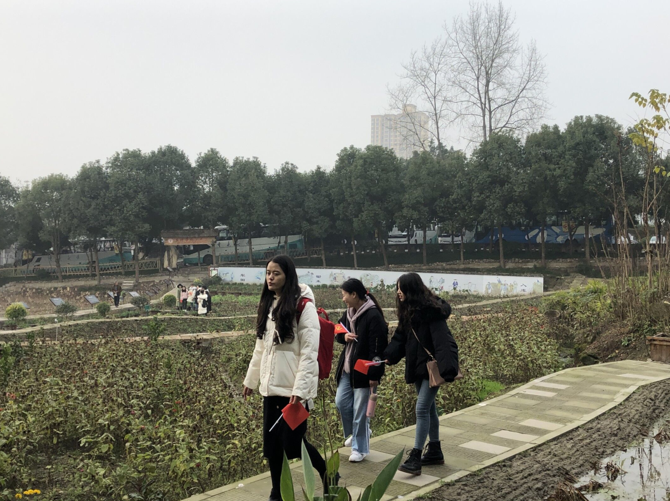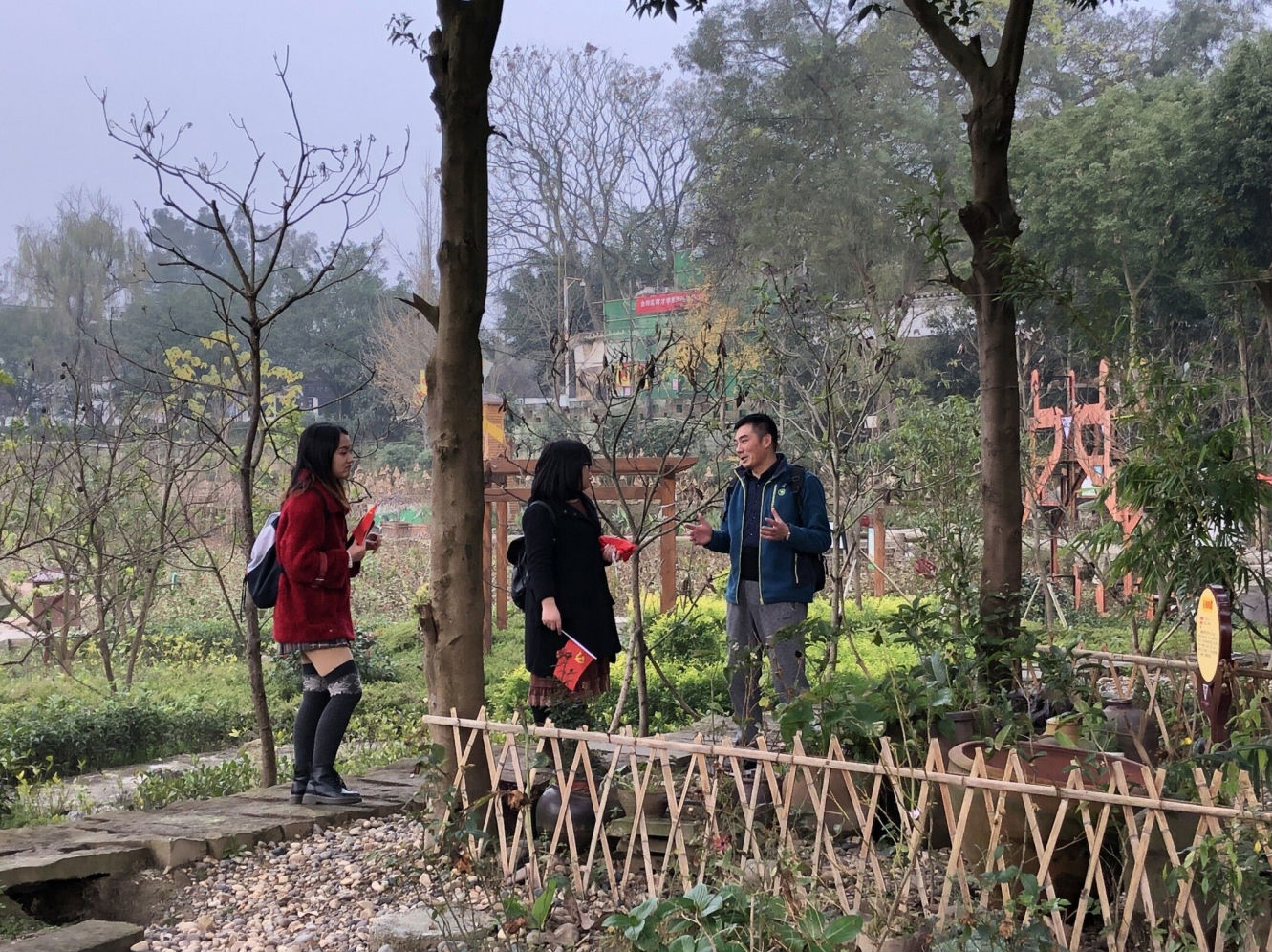 随后,大家自由参观纪念馆旁边的育才学校实验基地(取名为“农耕学堂”)。大家非常高兴地看到学生们在田间地头充分发挥聪明才智,把校门口的树林、荷田、小路、庄稼地做得井井有条而又美轮美奂,充满了想象力。大家惊呼这才是实施素质教育的理想天地。李老师还给大家介绍了育才学校办学的情况,遗憾的是因为怕过多干扰孩子们的学习,所以并没有联系安排参观校园内部,又因为内部修复工作,育才学校旧址古圣祠暂时封闭,但李老师大致给大家介绍了育才学校创办的一些情况,如部分革命遗孤当时在此就读,名家名师为孩子们授课,当时在重庆的党的领导人时来关心孩子们的成长,使大家受益匪浅。