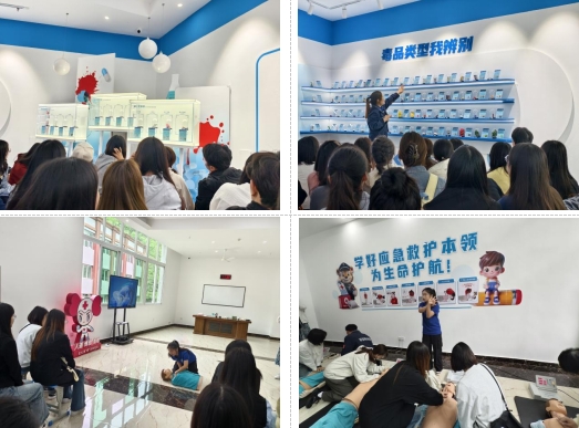 随后,支部成员进入研学基地,掌握禁毒教育知识,学习急救心肺复苏技能,并进行了胸外按压与人工呼吸演练。通过实践操作,增强了安全意识,提升了应急救护能力,感悟生命的意义,筑牢服务初心。